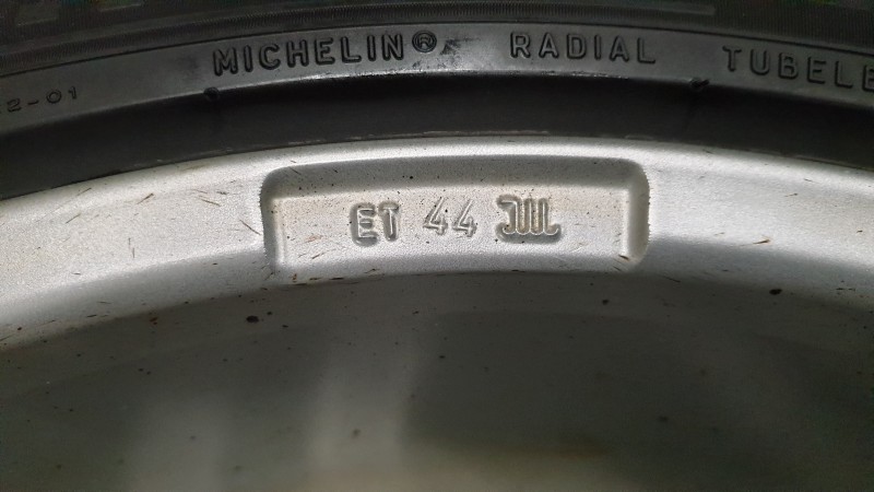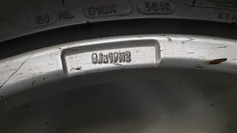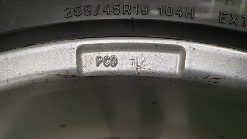 112mm tarp tvirtinimo taškų, ET44 J8. Su žieminėmis padangomis. Michelin X-Ice North, 255/45 R19, greičio indeksas 104H,
